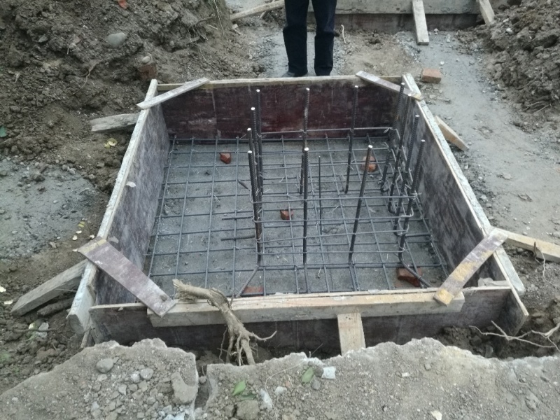 2、第二~四天:澆筑基礎(chǔ)墊層、綁扎柱基鋼筋、柱基澆筑