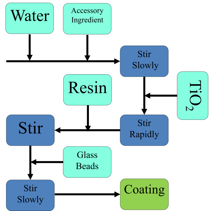 熱反射涂料的制備:將溶劑加入到去離子水中,攪拌均勻;加入一定量的顏填料,高速攪拌,加入樹脂及其它助劑中速攪拌,加入空心玻璃微珠低速攪拌,最后調(diào)節(jié)溶液pH獲得熱反射涂料。