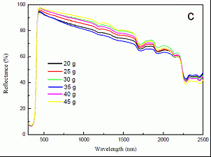 (c)不同含量鈦白粉的樣品的反射圖譜